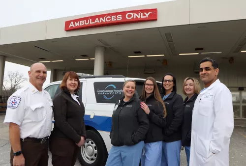 Lowell General’s paramedic service, which few Massachusetts communities have, provides Advanced life-saving treatment in the field, a step beyond what most ambulance EMTs can provide. Paramedics are trained to use semiautomatic defibrillation, which can provide a quicker shock of electricity to the heart, and take an ECG reading of the heart rhythm that is relayed to a cardiologist via cellphone.
