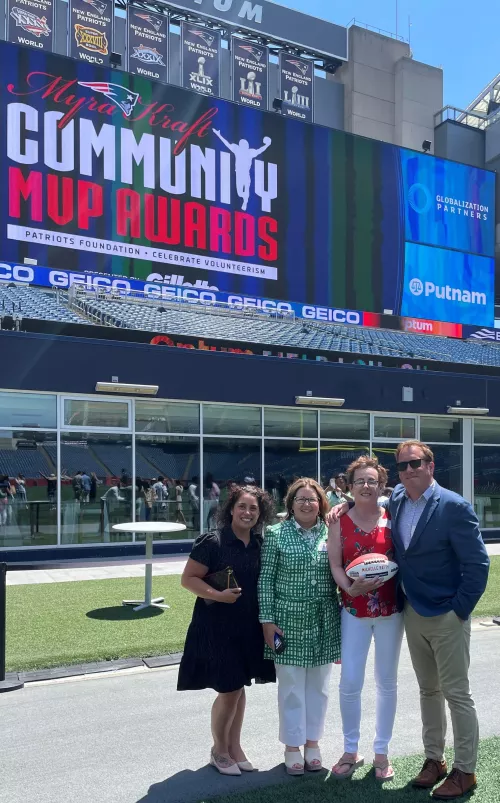 A total of 26 volunteers were selected throughout New England and each non-profit organization served by these volunteers received a generous $10,000 grant from the Kraft Family, New England Patriots Foundation and Gillette. The grant in honor of Michelle’s volunteer service will support a cause near and dear to her heart, TeamWalk for CancerCare and helping cancer patients and families in need.