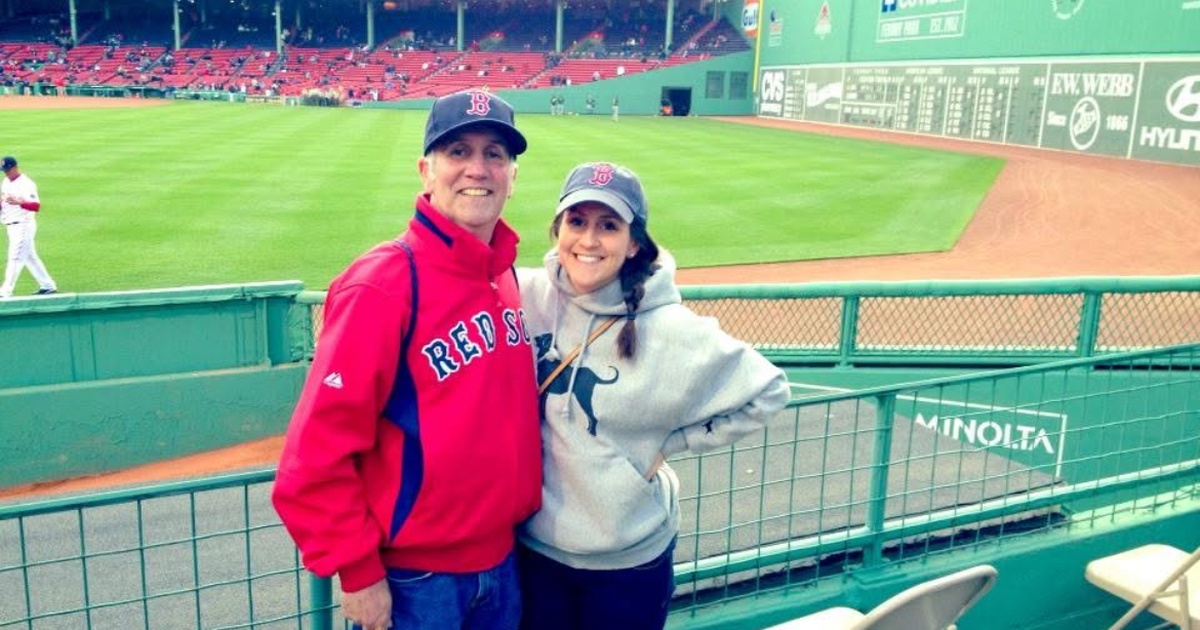 When she crosses the finish line in April, she imagines her father in his Red Sox shirt and hat, Dunkin' coffee in hand, beaming with pride.