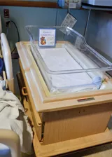 After the delivery, Dr. Panda presented the Korths with a room in the Mother-Infant Unit specifically tailored to their needs: a hemmed hospital gown for Beth to fit her properly; a bed lower to the ground so Beth could easily get in and out; and a bassinet custom-made by the Facilities department to be just the right height for Beth to pick up and put down Everett from her bed. And the care team was very accommodating of Alex, permitting him to stand and hold the baby, instead of sitting in a chair.