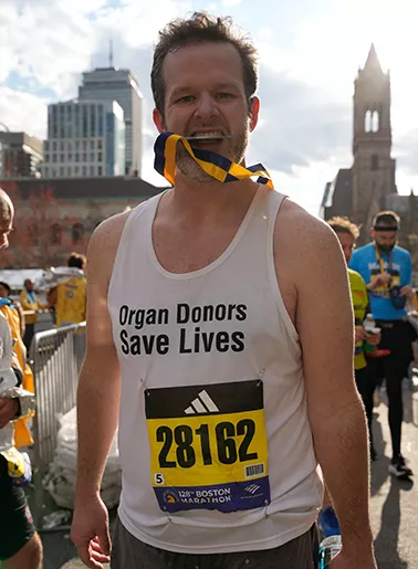 Connor credits the donation experience for a renewed attention to his own health, and part of the reason he signed up to run the 2024 Boston Marathon. A runner in high school, Connor’s family had received bibs for life from the One Fund after being present at finish line during the 2013 Boston Marathon bombing. “I’d been thinking about running for a few years but it felt like a great opportunity to show what organ donors are capable of.”