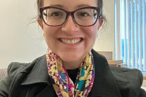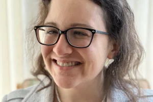 The tumor was located on her cerebellum, the part of the brain that affects balance and movement. Neurosurgeons at Tufts Medical Center were able to remove the tumor shortly after diagnosis completely, but per treatment protocols for her tumor type, Elizabeth still required radiation and chemotherapy. Five years later, she needed a second brain surgery to remove a cavernous malformation, an abnormal cluster of blood vessels that was a rare side effect of the radiation therapy she had received. Over the 21 years since, Elizabeth has dealt with a bevy of late-term side effects of her cancer treatments, including some permanent hearing loss and recurring meningiomas (small, benign brain tumors), as well as double vision and eye misalignment due to weakening of the nerves that control the eye muscles.