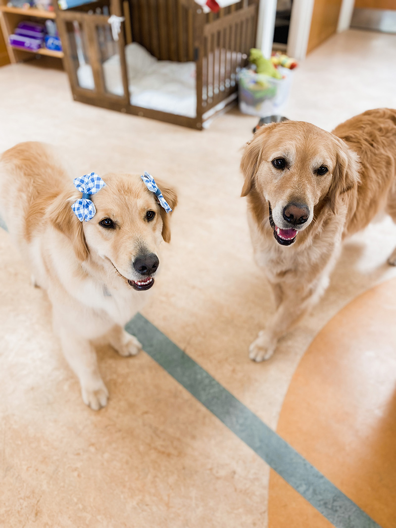 Both are hospital facility dogs who came to us through the generous support of Tufts Medical Center donors.