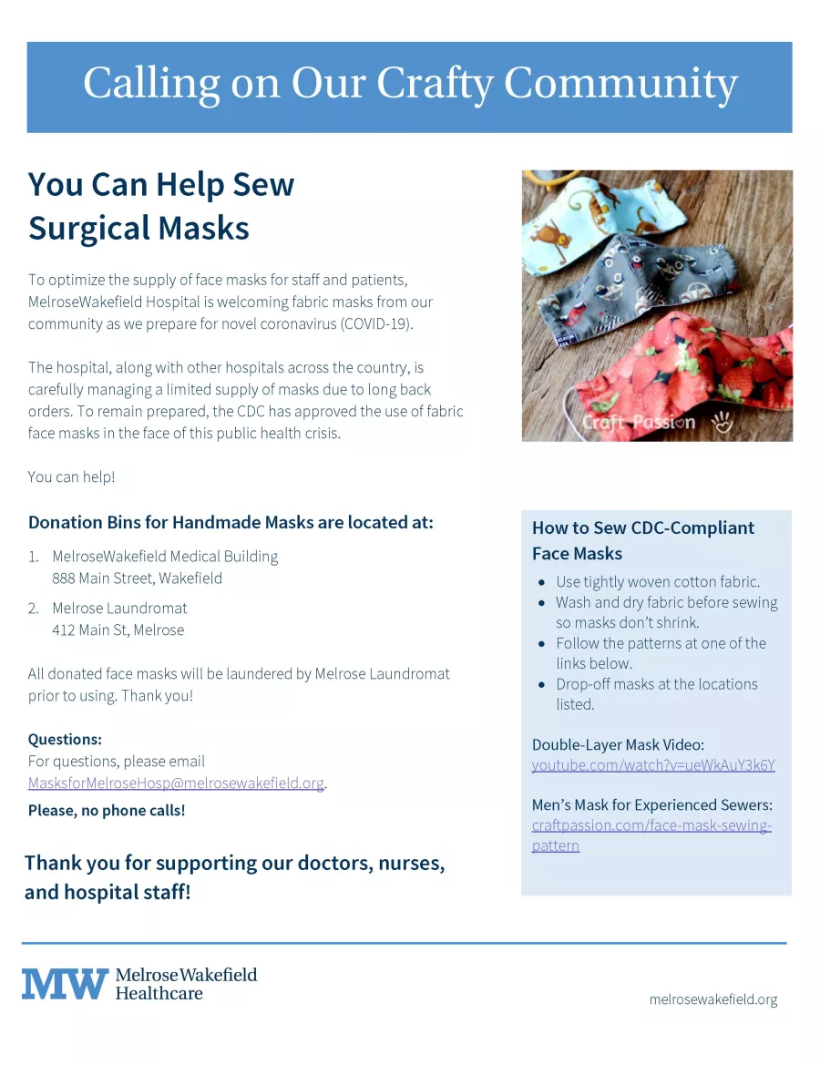 Questions can be sent to MasksForMelroseHosp@tuftsmedicine.org.
