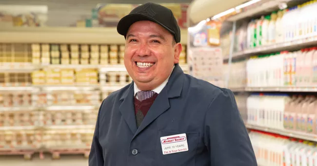 Jose Orellana is happily back to stacking the dairy cases at the Bellingham Market Basket.