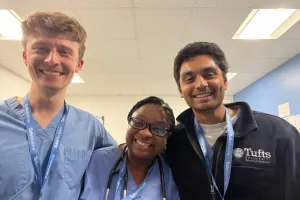 The interns have a “2+2” structure throughout the year, where they have a two-week inpatient block, followed by a two-week block of ambulatory clinics, elective time, or back-up, known as “plus-two” blocks. For part of the year, they will have back-to-back inpatient blocks followed by a “plus-two” block (“2+2+2”), but these inpatient blocks will be in different subspecialty areas to experience new learning environments. The inpatient experiences include ward rotations at Tufts Medical Center on the Cardiology (General Cardiology/Electrophysiology and Advanced Heart Failure), Nephrology, Pulmonology, Infectious Diseases, Hematology/Oncology, General Medicine services at Tufts Medical Center (including General Medicine, Geriatrics and Gastroenterology-General Medicine) and General Medicine at Newton Wellesley Hospital.