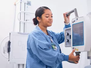 Lowell General Hospital employee operating an x-ray machine at the Tewksbury Urgent Care location.